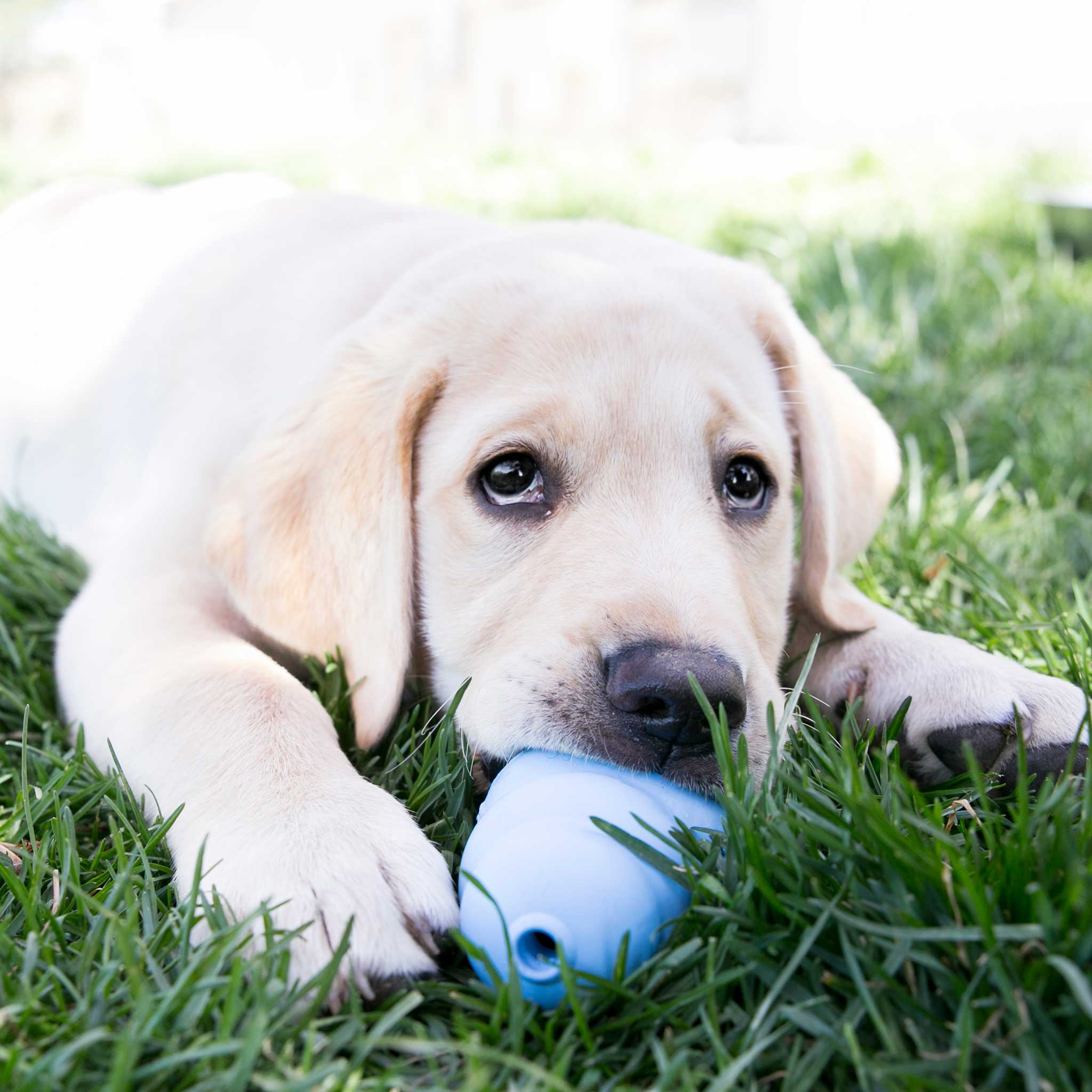 Veterinari e addestratori consigliano di riempire KONG Puppy con Snack, crocchette o biscotti come supporto per l’addestramento al trasportino, per diminuire l’ansia da separazione, favorire comportamenti di masticazione corretti e dissuadere da comportamenti errati.