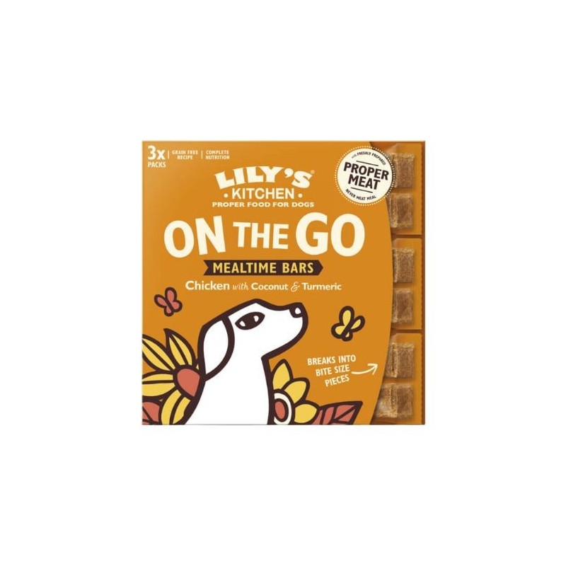 Le barretteย On the Goย di Lily’s Kitchen sono l’opzione ideale per i cani e i proprietari attivi che amano trascorrere il tempo all’aria aperta. Con una ricetta originale al pollo, noce di cocco, curcuma, semi di lino e banana, ogni pezzettino รจ una deliziosa esplosione di gusto e salute.