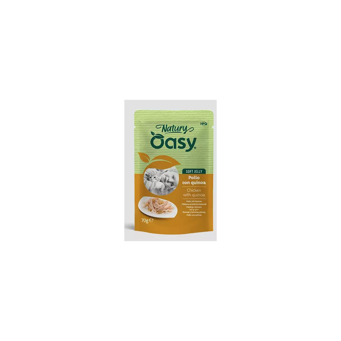 OASY Natury Soft Jelly buste pollo con quinoa è un Alimento umido complementare per gatti adulti in busta da 70 gr per gatti completamente naturale senza aggiunta di alcun prodotto chimico, colorante o conservante.
